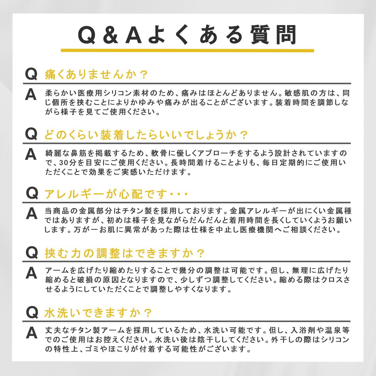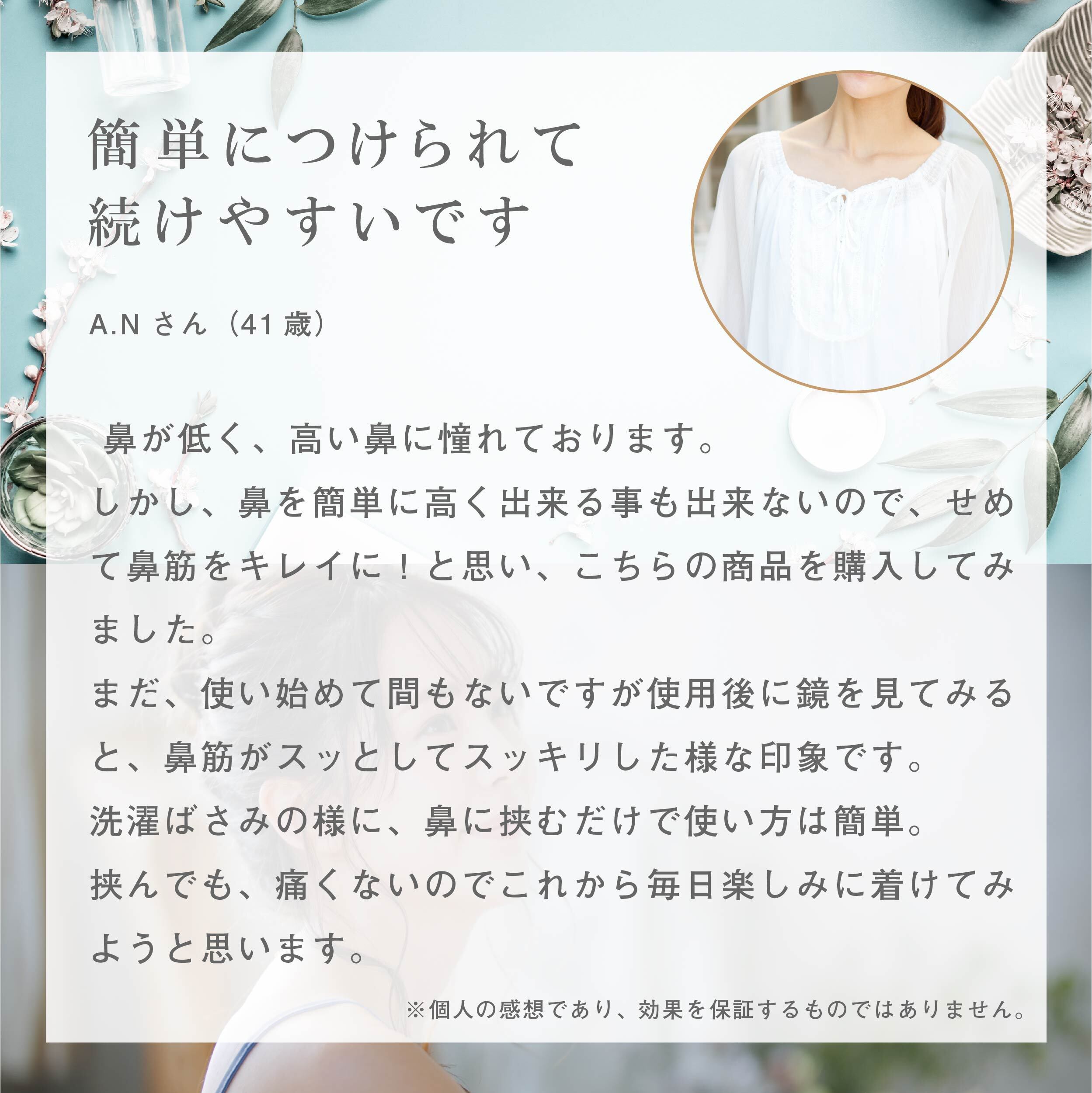 【使用上の注意事項】長時間のご使用は控えてください。鼻は様々な軟骨で形成されています。そのため毎日30分程度を目安に、継続をして使用するケア商品となります。