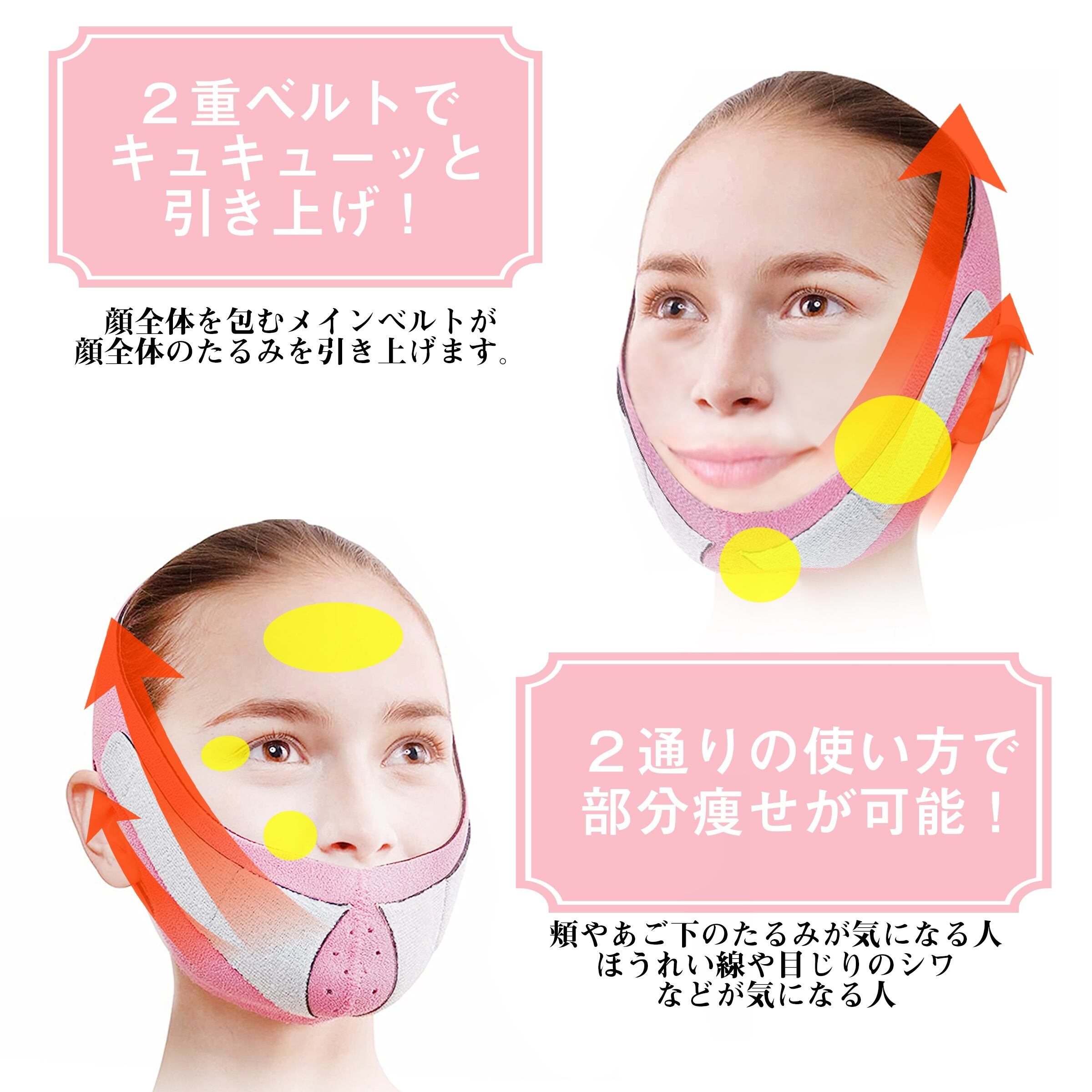 (2重ベルトで顔をキュート引き上げ)2重ベルトでキュキューッと頬や顔全体のたるんだ引き上げ、あご下のたるみも引き上げる小顔 エクササイズ 発汗 バンド コルセット マスク