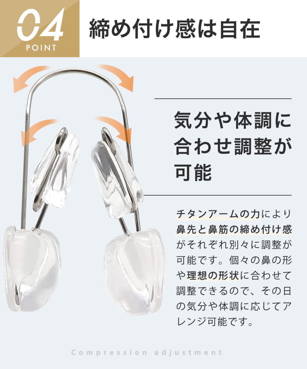 【独自の構造】独自のHold Shaping構造を採用。ノーズアップ、美鼻矯正をもたらします 。