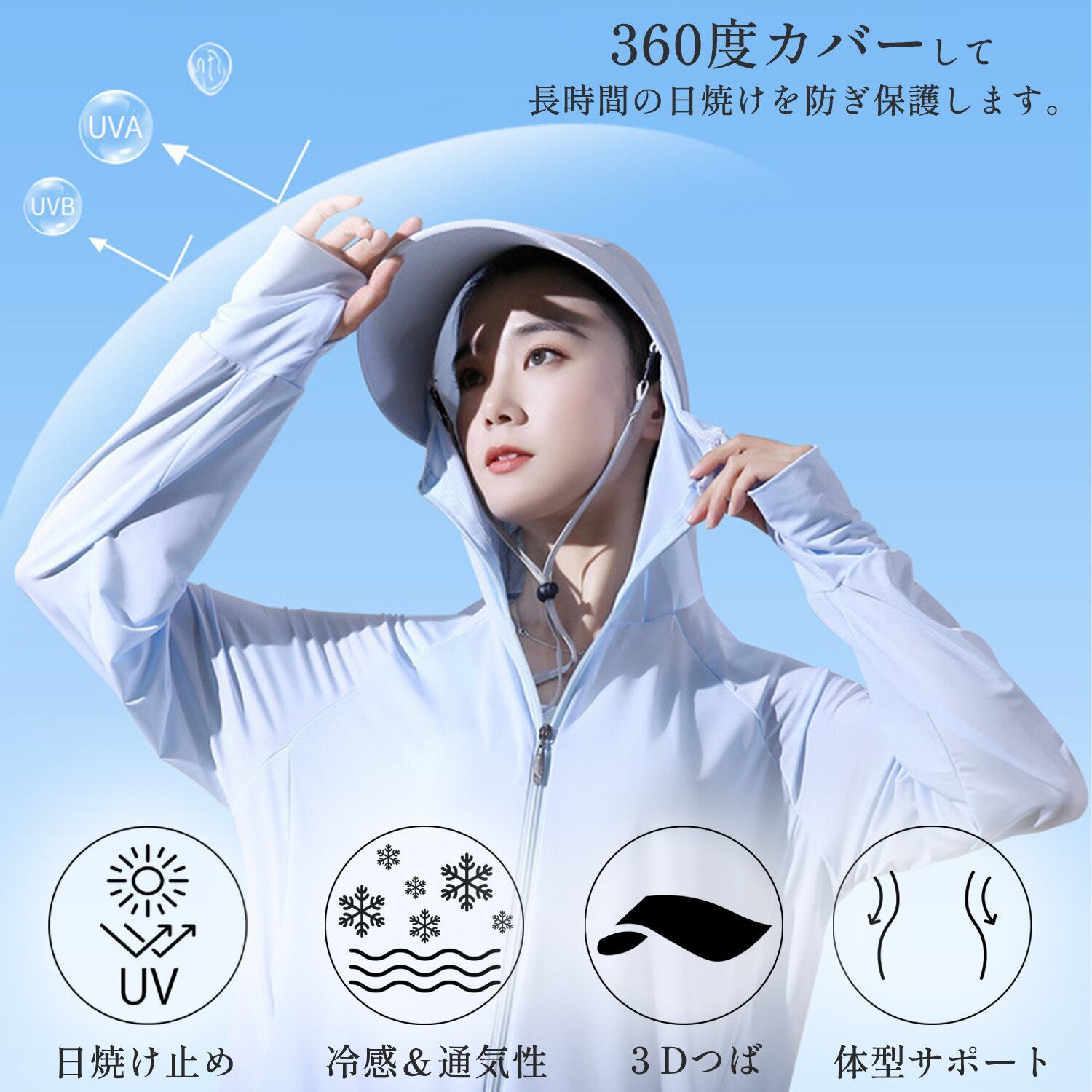 オーストラリア/ニュージーランドで定められたUVカットの世界的基準で最高値「UPF50+」のUVカットパーカー